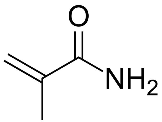 | Keywords: Methacrylamide skeletal.svg Chemical structure of methacrylamide 2-Methyl-2-propenamide; 2-Methylpropenamide; α-Methyl acrylic amide; Methacrylic acid amide; Methacrylic amide; Methylacrylamide Own 18 58 12 June 2012 UTC Ed Edgar181 200px Unsubstituted primary amides Monomers |