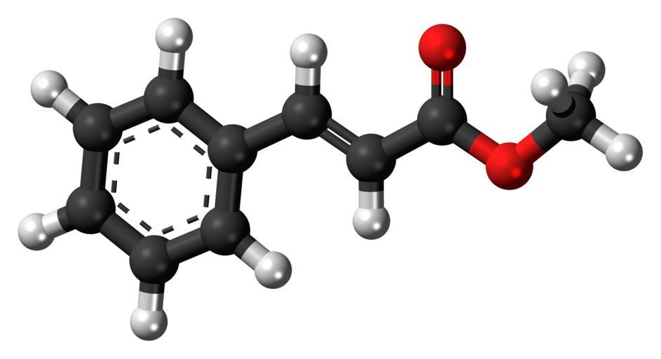 | Keywords: Methyl cinnamate 3D ball.png Ball-and-stick model of the methyl cinnamate molecule the ester of cinnamic acid and methanol Colour code 505050 Carbon C black<br> F0F0F0 Hydrogen H white<br> F51E1E Oxygen O red<br> 2011-07-03 own DS Visualizer Jynto talk Space-filling version cc-zero Images by Jynto Cinnamate esters Methyl esters 3D-sticks models |