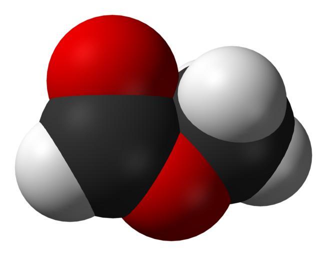 Keywords: Methyl-formate-3D-vdW.png Space-filling model of the methyl formate molecule Own 2008-03-09 Ben Mills Benjah-bmm27 Images by Ben Mills Methyl formate