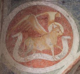 Keywords: Metnitz - Pfarrkirche - Lukasstier.JPG Denkmalgeschütztes Objekt Österreich 62520 Metnitz - Fresco Pfarrkirche in Metnitz - Fresko own Raul de Chissota 2011-07-12 PD St Leonhard in Metnitz - Frescos Frescos of Bull of Saint Luke in Carinthia |