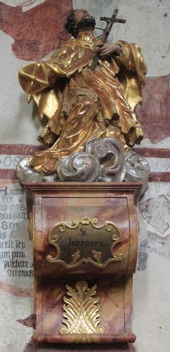 Keywords: Metnitz - Pfarrkirche - Nepomuk.JPG Denkmalgeschütztes Objekt Österreich 62520 Metnitz Pfarrkirche in Metnitz own Raul de Chissota 2011-07-12 PD St Leonhard in Metnitz - Skulpturen Statues of John of Nepomuk in Carinthia