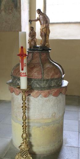 Keywords: Metnitz - Pfarrkirche - Taufstein.JPG Denkmalgeschütztes Objekt Österreich 62520 Metnitz Pfarrkirche in Metnitz own Raul de Chissota 2011-07-12 PD St Leonhard in Metnitz - Skulpturen Baptismal fonts in Carinthia Statues of the baptism of Jesus Christ in Carinthia Metnitz |