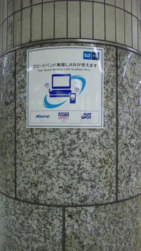 Keywords: Metorowifi.JPG en Tokyo Metoro NTT WiFi Spot ja 京メトロ内のNTTグループ公衆無線LAN案内 自分で撮影 私 2010-06-05 Unidentified train stations of Tokyo Metro NTT Group Signs on columns in Japan