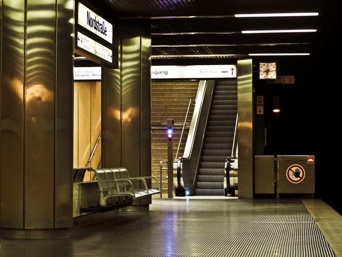Keywords: metro railway station platform escalator train passengers modern subway düsseldorf stop city urban