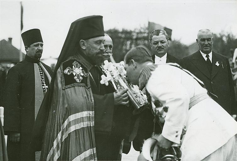 Keywords: Metropolitan Visarion Puiu.jpg en Bishop of Hotin Bessarion Puiu meets King Charles at the celebrations of the consecration of the Cathedral of Saints Constantine and Helen in Balti ru Епископ Хотинский Висса ион Пую вст ечает ко оля Ка ола на то жествах по освящению собо а Святых Константина и Елены в г Бельцы ro Episcopul Hotinului Visarion şi Regele Carol II la sfinţirea catedralei Sf Constantin şi Eleana din Bălţi http //www gazeta-sp info/photo/index php PAGE_NAME section SECTION_ID 358 order id photographer King Charles 2 июня 1935 г PD-old Visarion Puiu Carol II of Romania History of Bălți RaySys