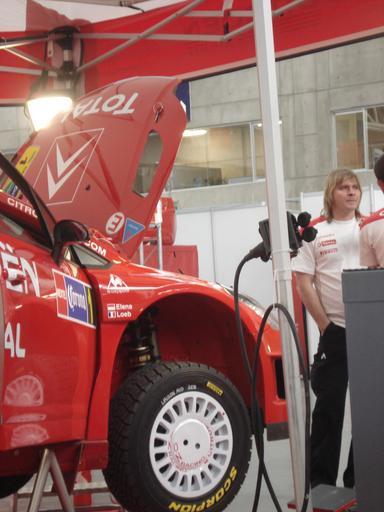 Keywords: MEX 2008 RB 01 Service 4.jpg Sebastien Loeb's Citroen C4 WRC car undergoes service prior to the start of the 2008 Rally Mexico at rally base in the Poliforum in Leon Mexico Own 2008-02-27 Joshbaumgartner 2008 Rally Mexico Citroën C4 WRC of Sébastien Loeb in 2008 World Rally Championship automobile maintenance |