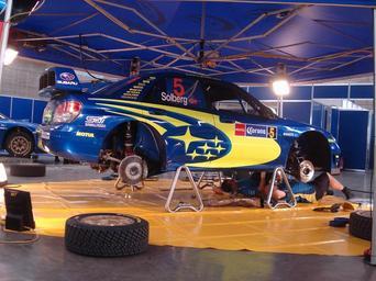 Keywords: MEX 2008 RB 05 service.jpg Petter Solberg's Subaru Impreza WRC car is serviced prior to the start of the 2008 Rally Mexico at rally base in the Poliforum in Leon Mexico Own 2008-02-27 Joshbaumgartner 2008 Rally Mexico Petter Solberg in 2008 Subaru Impreza WRC2007 World Rally Championship automobile maintenance |