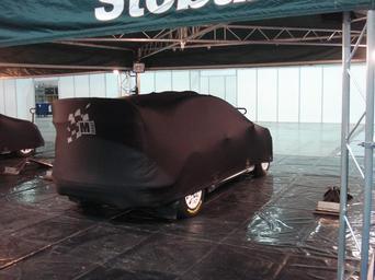 Keywords: MEX 2008 RB 07 covered 2.jpg Gigi Galli's Ford Focus RS WRC 07 car sits under cover prior to the start of the 2008 Rally Mexico at rally base in the Poliforum in Leon Mexico Own 2008-02-27 Joshbaumgartner 2008 Rally Mexico Gigi Galli Ford Focus RS WRC 07 of M-Sport World Rally Team |
