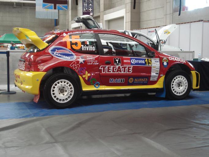 Keywords: MEX 2008 RB 15 parked 2.jpg Ricardo Triviño's Peugeot 206 WRC car parked prior to the 2008 Rally Mexico at rally base in the Poliforum in Leon Mexico Own 2008-02-27 Joshbaumgartner Deminimis Logos from different companies on car All logos are copyrighted by their respective owners 2008 Rally Mexico Ricardo Triviño Peugeot 206 WRC |