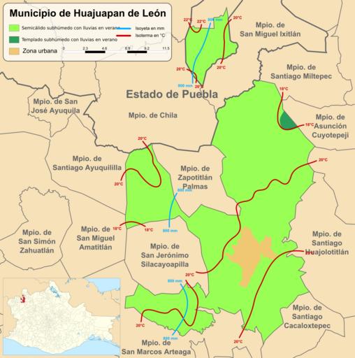 Keywords: Mexico Oaxaca Huajuapan de Leon climates map.svg Mapa de climas del municipio de Huajuapan de León Oaxaca México own Inkscape 2011-11-19 Battroid SVG maps of Oaxaca