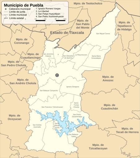 Keywords: Mexico Puebla Puebla subdivision map.svg Mapa de las juntas municipales en que se subdivide el Municipio de Puebla en Puebla México own Inkscape 2013-05-01 Battroid SVG maps of Puebla