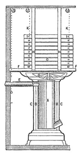 Keywords: Meyers b12 s0310 b1.png de Uslars Obstdarre A Füllofen B Mantel C äußere Umhüllung D Flügelscheibe E Ofenrohr G Horden F Winkeleisen H Bandeisen I Häkchen K Ketten Meyers b12 s0310 jpg ca 1885 author PD-Meyers Images from Meyers Konversationslexikon 4th edition - text figures Fruit drying |