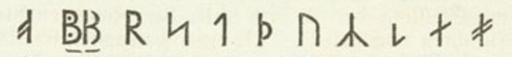 Keywords: Meyers b14 s0036 b4b.jpg de jüngstes nordisches Runenalphabet mit žpunktierten Runen nach dem Codex runicus 2 Hälfte o p r s t th/dh u/w y z æ Å“ Meyers b14 s0036 jpg ca 1885 author 150px thumb 1 Hälfte PD-Meyers Runic letters Images from Meyers Konversationslexikon 4th edition - text figures |