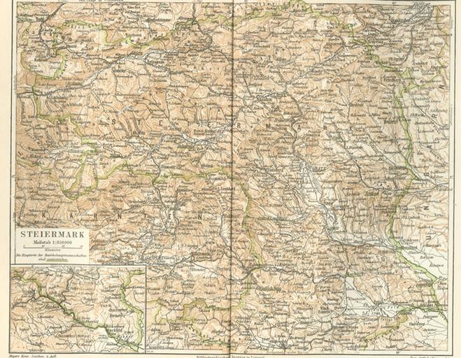 Keywords: Meyers b15 s0256a.jpg 15 0255 0257 256 Maps from Meyers Konversationslexikon 4th edition Old maps of Styria