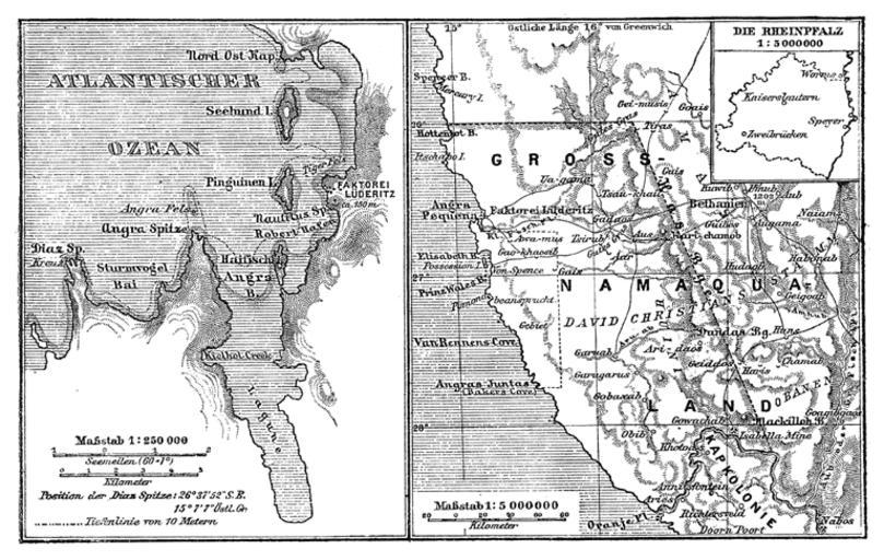 Keywords: Meyers b1 s0581 b1.png de links Angra Pequena-Bai 1 250 000 rechts Lüderitzland 1 5 000 000 als Größenvergleich die Rheinpfalz Meyers b1 s0581 jpg ca 1885 author PD-Meyers Lüderitz Maps from Meyers Konversationslexikon 4th edition Images from Meyers Konversationslexikon 4th edition - text figures |
