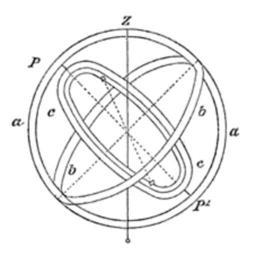Keywords: Meyers b1 s0846 b1.png de Armillarsphäre a Ebene des Meridians b Ebene des Himmelsäquators c Deklinationskreis PP<sup>1</sup> Achse um welche c drehbar ist Z höchster Punkt von a Meyers b1 s0846 jpg ca 1885 author PD-Meyers Armillary spheres Language-neutral diagrams Images from Meyers Konversationslexikon 4th edition - text figures |