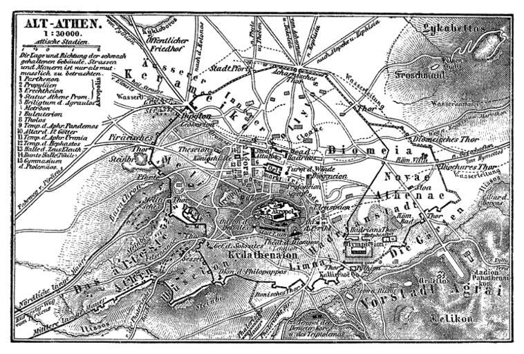 Keywords: Meyers b1 s0995 b1.png de Plan des alten Athen 1 30 000 1 “4 Akropolis Parthenon Propyläen Erechtheion Statue Athene Promachos Heiligtum des Agraulos Metroon Buleuterion Tholos Tempel der Aphrodite Pandemos Altar der 12 Götter Tempel der Aphrodite Urania Tempel des Hephästos Halle des Zeus Eleutherios Bunte Halle Pökile Gymnasium d Ptolemäos Meyers b1 s0995 jpg ca 1885 author PD-Meyers Old maps of ancient Athens Maps of cities Meyers Konversationslexikon 4th edition Images from Meyers Konversationslexikon 4th edition - text figures |