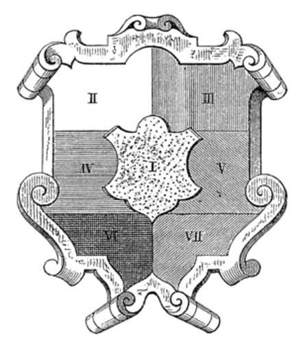 Keywords: Meyers b1 s1023 b1.png de Schraffierungen zur Kennzeichnung der Farben von Wappen in einfarbigen Abbildungen I Gold II Silber III Rot IV Blau V Grün VI Schwarz VII Purpur Meyers b1 s1023 jpg ca 1885 author PD-Meyers Hatching system Images from Meyers Konversationslexikon 4th edition - text figures |