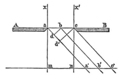 Keywords: Meyers b2 s0841 b1.png de Erklärung der Beugung des Lichts AB “ Fensterladen ac “ WellenstĂĽck in einer Ă–ffnung Spalt xa x ˛c “ einfallende Strahlen am cn “ fortgesetzte Strahlen jenseits der Ă–ffnung aa ˛ cc ˛ “ gebeugtes StrahlenbĂĽndel ad ˛ “ Strecke um welche aa ˛ hinter cc ˛ zurĂĽckbleibt bb ˛ “ mittlerer Strahl des BĂĽndels Meyers b2 s0841 jpg ca 1885 author PD-Meyers Interference Images from Meyers Konversationslexikon 4th edition - text figures |
