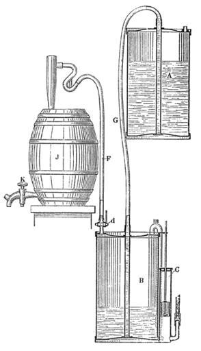 | Keywords: Meyers b2 s0922 b1.png de Bierdruckapparat von Mahr u Eisele A “ Wasserbehälter B “ Luftreservoir C “ Pumpe F G m “ Rohre J “ BierfaĂź K d “ Hähne Meyers b2 s0922 jpg ca 1885 author PD-Meyers Beer barrels Images from Meyers Konversationslexikon 4th edition - text figures |