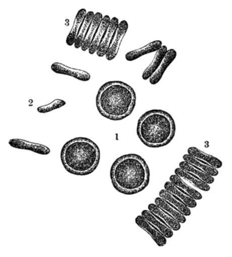 | Keywords: Meyers b3 s0054 b1.png de rote Blutkörperchen des Menschen 600mal vergrößert von der Fläche von der Kante geldrollenartig Meyers b3 s0054 jpg ca 1885 author PD-Meyers Red blood cells Images from Meyers Konversationslexikon 4th edition - text figures |