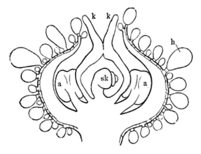 | Keywords: Meyers b3 s0069 b1.png de halbierte Blüte von Chenopodium a “ Staubgefäße k “ Pistill sk “ Samenknospe Meyers b3 s0069 jpg ca 1885 author PD-Meyers Chenopodium 19th-century flower diagrams Images from Meyers Konversationslexikon 4th edition - text figures Chenopodium - botanical illustrations |