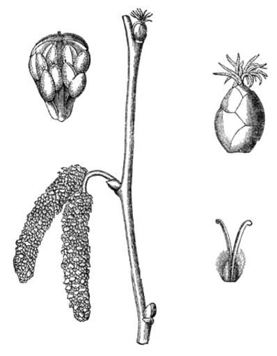 | Keywords: Meyers b3 s0074 b1.png de Blüte des Haselstrauchs als Beispiel eines Windblütlers Mitte Zweig mit weiblicher Blüte oben und männlichen Kätzchen links oben männliche Blüte rechts oben weibliche Blüte vergrößert rechts unten Stempel vergrößert Meyers b3 s0074 jpg ca 1885 author PD-Meyers Corylus flowers 19th-century flower diagrams Images from Meyers Konversationslexikon 4th edition - text figures | ||||