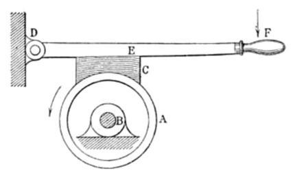Keywords: Meyers b3 s0392 b1.png de Backenbremse Meyers b3 s0392 jpg ca 1885 author PD-Meyers Images from Meyers Konversationslexikon 4th edition - text figures Brakes