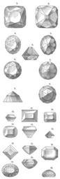 Keywords: Meyers b5 s0314 b1.png de Illustration zum Artikel žEdelsteine 1 “7 Brillanten 1 “3 Quadriert 4 “5 Oval 6 “7 Rund 8 “9 Rosetten 10 “11 Tafelstein 12 “15 Dickstein 16 “19 Treppenschnitt 20 “21 Doppelte Facetten Meyers b5 s0314 jpg ca 1885 author PD-Meyers Images from Meyers Konversationslexikon 4th edition - text figures Gem cutting |