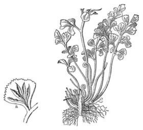 Keywords: Meyers b6 s0051 b3.png de Asplenium Ruta muraria a Wedelstück Unterseite mit Fruchthaufen Meyers b6 s0051 jpg ca 1885 author PD-Meyers Images from Meyers Konversationslexikon 4th edition - text figures Asplenium ruta-muraria illustrations
