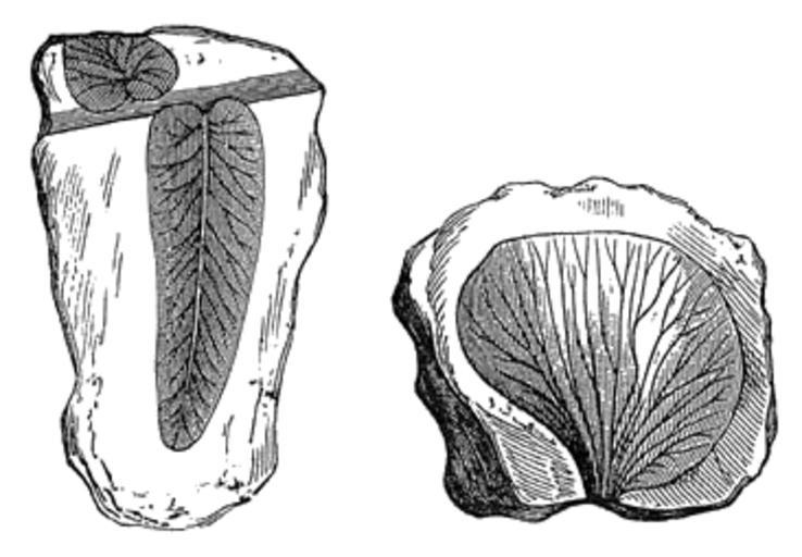 Keywords: Meyers b6 s0054 b1.png de links Sphenopteris Bgt rechts Cyclopteris Bgt Meyers b6 s0054 jpg ca 1885 author PD-Meyers Images from Meyers Konversationslexikon 4th edition - text figures Sphenopteris Cyclopteris