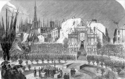 | Keywords: MI - 1865 - The King of Italy laying the foundation stone of the new buildings in the Piazza del Duomo, Milan march 7 1865.jpg Il re d'Italia posa la prima pietra dei nuovi edifici in Piazza Duomo Milano il 7 marzo 1865 Incisione da giornale inglese contemporaneo all'evento The King of Italy laying the foundation stone of the new buildings in the Piazza del Duomo Milan march 7 1865 contemporary newspaper engraving Source Online auction site ebay PD-Art Duomo Milan in art - exterior 1865 Milan in art 1865 Galleria Vittorio Emanuele II Milan in art 1865 Galleria Vittorio Emanuele II Milan - Exterior 1865 Victor Emmanuel II of Italy 1865 1865 in Milan Historical images of Piazza Duomo Milan 1865 Cornerstone ceremonies Events in Milan 1865 Foundation stones 7 March Foundation stone laying ceremonies Artworks missing infobox template |