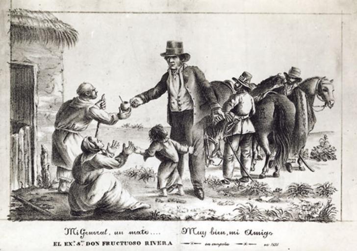| Keywords: Mi general un mate.jpg es Dibujo de Juan Manuel Besnes e Irigoyen en el que se retrata a Fructuoso Rivera recibiendo un mate de un paisano 1830 http //divisacolorada blogspot com/2010/04/fructuoso-rivera-caudillo-de-los html Juan Manuel Besnes e Irigoyen 1789 - 1865 PD-Old Uploaded with UploadWizard Fructuoso Rivera Juan Manuel Besnes e Irigoyen Mate in art People of Uruguay in art 1830 in Uruguay | ||||