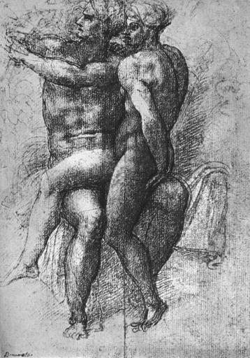 View Original:michelangelo_nude_female_seated_knees_seated_male_nude_adam_eve.jpg (629x900)