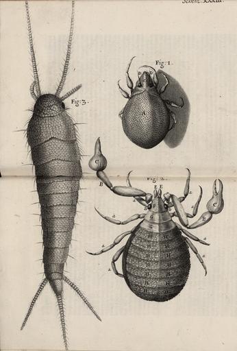 Keywords: Micrographia Schem 33.jpg Schem XXXIII - <br/> Fig 1 Of the wandring Mite <br/> Fig 2 Of the Crab-like Insect <br/> Fig 3 Of the small Silver-colour'd Book-worm 1665 Inc on Paper Institution National Library of Wales object history credit line accession number PD-old-100 Hooke's Micrographia Diagrams from the National Library of Wales Images uploaded as part of NLW - WMUK collaboration Robert Hooke Micrographia Uploaded with UploadWizard |