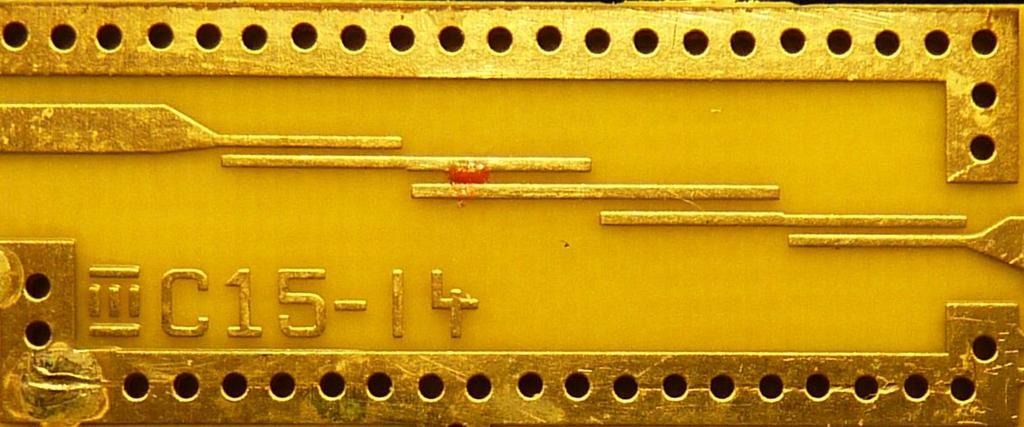 | Keywords: Microstrip-bandpass-filter.jpg Bandpassfilter mit Mikrostreifenleitern der seitlich gekoppelte λ/2-Resonatoren verwendet Die metallisierten Bohrungen an jeder Seite sind nicht Teil der Filterstruktur sondern Teil des Gehäuses und dienen der Verbesserung der Isolation Die Substratdicke beträgt ungefähr 0 5 mm und die Dicke der Metallisierung vielleicht 20 µm Die Bandbreite liegt am unteren Ende des Ku-Bandes deshalb muss die Dieelektrizitätskonstante des Substrates bei ca 3 5 liegen Für den Maßstab Das Raster der Gehäuse-Bohrungen liegt genau bei 1 mm Bandpass filter in microstrip using edge-coupled halfwave resonators The via fences on each side are not part of the filter but form part of the enclosure The substrate thickness is about 0 5mm and the metallization thickness perhaps 20μm The pass band is at the bottom of the Ku band so the substrate dielectric constant must be about 3 5 For scale the pitch of the via fences is precisely 1mm own Catslash 2010-03-17 Bandpass filters Microstrip |