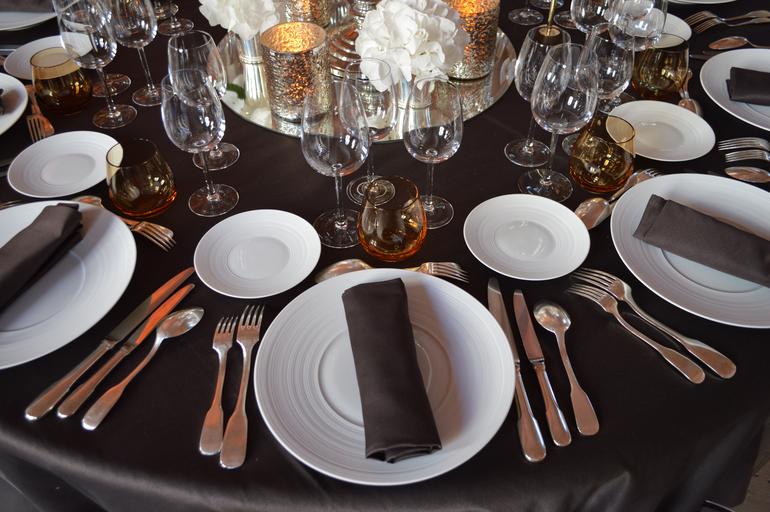 MAKE A MEME View Large Image middle school bernardine dinner reception table fork covered plate stemware dishes
