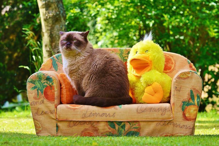 MAKE A MEME View Large Image mieze couch sofa duck cat british shorthair funny soft toy toys children meadow cute sweet yellow cheerful