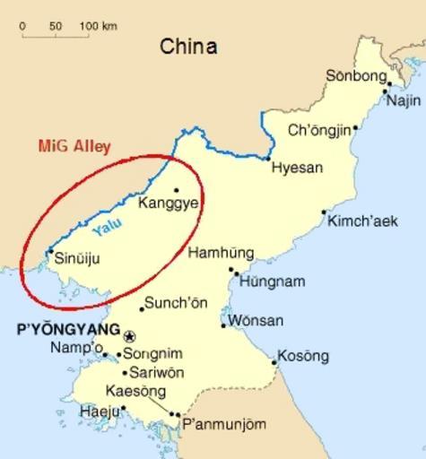 Keywords: MiG Alley Map.JPG Das Gebiet an der chinesisch-nordkoreanischen Grenze das während des Koreakrieges 1950-53 als MiG Alley berühmt wurde The area called MiG Alley during the Korean War 1950-53 on the Chinese-North Korean border own based on https //www cia gov/library/publications/the-world-factbook/maps/maptemplate_kn html CIA Factbook map on North Korea 01 06 2006 Triggerhappy Chinese 50px Russian 50px badjpeg Maps of the Korean War Military aircraft in the Korean War |
