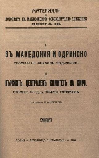 | Keywords: Mihail Gerdzhikov's and Hristo Tatarchev's Memoirs 2.jpg en Mihail Gerdzhikov's and Hristo Tatarchev's Memoirs 1928 scanned Lyubomir Miletich other versions Custom license marker 2015 11 05 PD-old 1928 books Books in Bulgarian Books from Bulgaria IMARO Mihail Gerdzhikov Hristo Tatarchev Lyubomir Miletich |