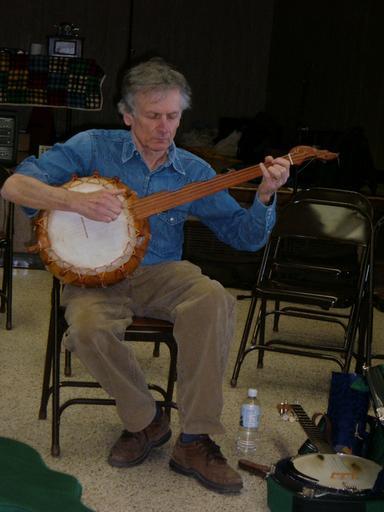 Keywords: Mike Seeger plays gourd banjo at Breakin Up Winter.JPG en Mike Seeger plays gourd banjo during his presentation to old-time music enthusiasts at Breakin' Up Winter an annual old-time music retreat outside Nashville own Fiddlefeller 2006-03 Published in the Breakin' Up Winter photo album at www nashvilleoldtime org cc-zero Music |