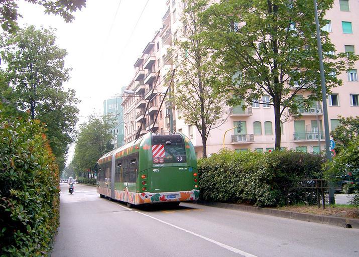 | Keywords: Milano-Cristalis2.jpg A rear view of the Milan Italy Cristalis trolleybus seen in image Milano-Cristalis1 jpg It is operating on a priority carriageway dedicated to emergency vehicles buses taxis and cycles Ordinary traffic uses the carriageways on either side of the hedges Own 2007-06 Spsmiler ATM 400 Hedges in Italy z 2007 in trolleybus transport in Milan June 2007 in Milan Milan trolleybus line 90 | ||||