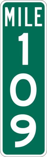 | Keywords: Mile Marker 109.svg PD MUTCD Rfc1394 457 1676 18 60 triple digit mile marker D10-3 Made using Viridian SVG Batcher this file was fabricated by a program 2009-03-05 Paul Robinson Rfc1394 Own work all rights released Public domain D10-3 - Distance Signs-3 Digit |