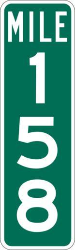 Keywords: Mile Marker 158.svg PD MUTCD Rfc1394 457 1676 18 60 triple digit mile marker D10-3 Made using Viridian SVG Batcher this file was fabricated by a program 2009-03-05 Paul Robinson Rfc1394 Own work all rights released Public domain D10-3 - Distance Signs-3 Digit |