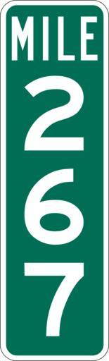 | Keywords: Mile Marker 267.svg PD MUTCD Rfc1394 457 1676 18 60 triple digit mile marker D10-3 Made using Viridian SVG Batcher this file was fabricated by a program 2009-03-05 Paul Robinson Rfc1394 Own work all rights released Public domain D10-3 - Distance Signs-3 Digit |