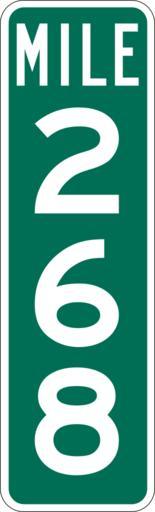 Keywords: Mile Marker 268.svg PD MUTCD Rfc1394 457 1676 18 60 triple digit mile marker D10-3 Made using Viridian SVG Batcher this file was fabricated by a program 2009-03-05 Paul Robinson Rfc1394 Own work all rights released Public domain D10-3 - Distance Signs-3 Digit |