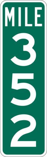 Keywords: Mile Marker 352.svg PD MUTCD Rfc1394 457 1676 18 60 triple digit mile marker D10-3 Made using Viridian SVG Batcher this file was fabricated by a program 2009-03-05 Paul Robinson Rfc1394 Own work all rights released Public domain D10-3 - Distance Signs-3 Digit |