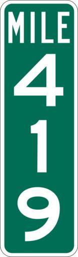 Keywords: Mile Marker 419.svg PD MUTCD Rfc1394 457 1676 18 60 triple digit mile marker D10-3 Made using Viridian SVG Batcher this file was fabricated by a program 2009-03-05 Paul Robinson Rfc1394 Own work all rights released Public domain D10-3 - Distance Signs-3 Digit |