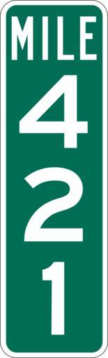 | Keywords: Mile Marker 421.svg PD MUTCD Rfc1394 457 1676 18 60 triple digit mile marker D10-3 Made using Viridian SVG Batcher this file was fabricated by a program 2009-03-05 Paul Robinson Rfc1394 Own work all rights released Public domain D10-3 - Distance Signs-3 Digit 421 number |
