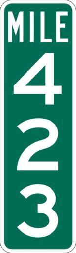 | Keywords: Mile Marker 423.svg PD MUTCD Rfc1394 457 1676 18 60 triple digit mile marker D10-3 Made using Viridian SVG Batcher this file was fabricated by a program 2009-03-05 Paul Robinson Rfc1394 Own work all rights released Public domain D10-3 - Distance Signs-3 Digit |